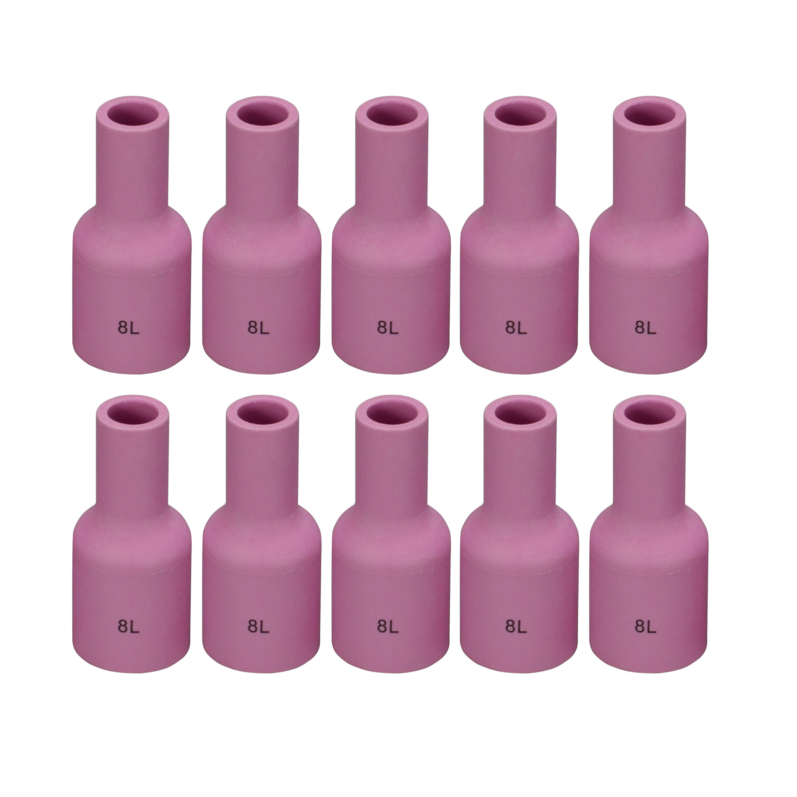 Long Large TIG Gas Lens Alumina Nozzle Ceramic Cup 57N74L (#8, 1/2" Orifice) for TIG Welding Torch WP 9 17 18 20 25 26 Series in Lincoln Miller ESAB Weldcraft CK Everlast 10pk