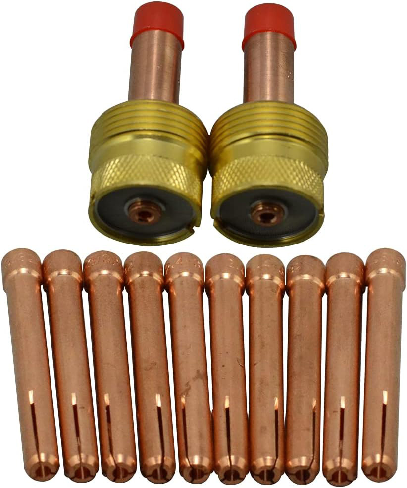 Copper Large Diameter TIG Gas Lens Collet and Bodies Fit SR PTA DB WP 17 18 26 TIG Welding Torch Work with 10N series tig collet and 57N 53N series ceramic cup 2pcs TIG Gas Lens Collet Bodies Ref No 995795 ( 1/8" & 3.2mm Orifice ) and Size: ( 1/8" x 2" & 3.2mm x 50mm ) 10pcs TIG Collets Ref No 10N25 ( 1/8" & 3.2mm Orifice ) and Size: (1/8“ x 2" & 3.2mm x 50mm ) Pack of 12